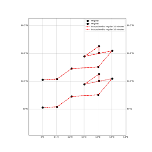 Finding the closest or interpolated positions at given times (e.g. wave observations).